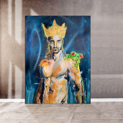 Der Froschkönig – Blattgold & fluoreszierende Contemporary Art von Daniela Filippelli