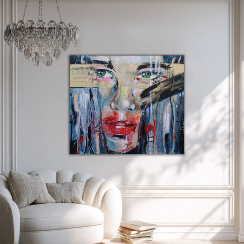 Dieses Werk vereint Farben und Klänge, Gesicht und Violinenschnecke, sichtbare Formen und unsichtbare Melodien. Ein Gemälde, das nicht nur gesehen, sondern gefühlt und gehört werden will.