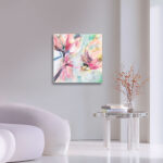 „Bloom And Grow“ mit Schmetterling zeigt zarte Magnolienblüten in transparenten Pastelltönen, durchzogen von lichtvollen Effekten und fließenden Strukturen. Der feine Schmetterling verstärkt die poetische, naturverbundene Atmosphäre des Werkes. Ein modernes, elegantes Original von Daniela Filippelli.