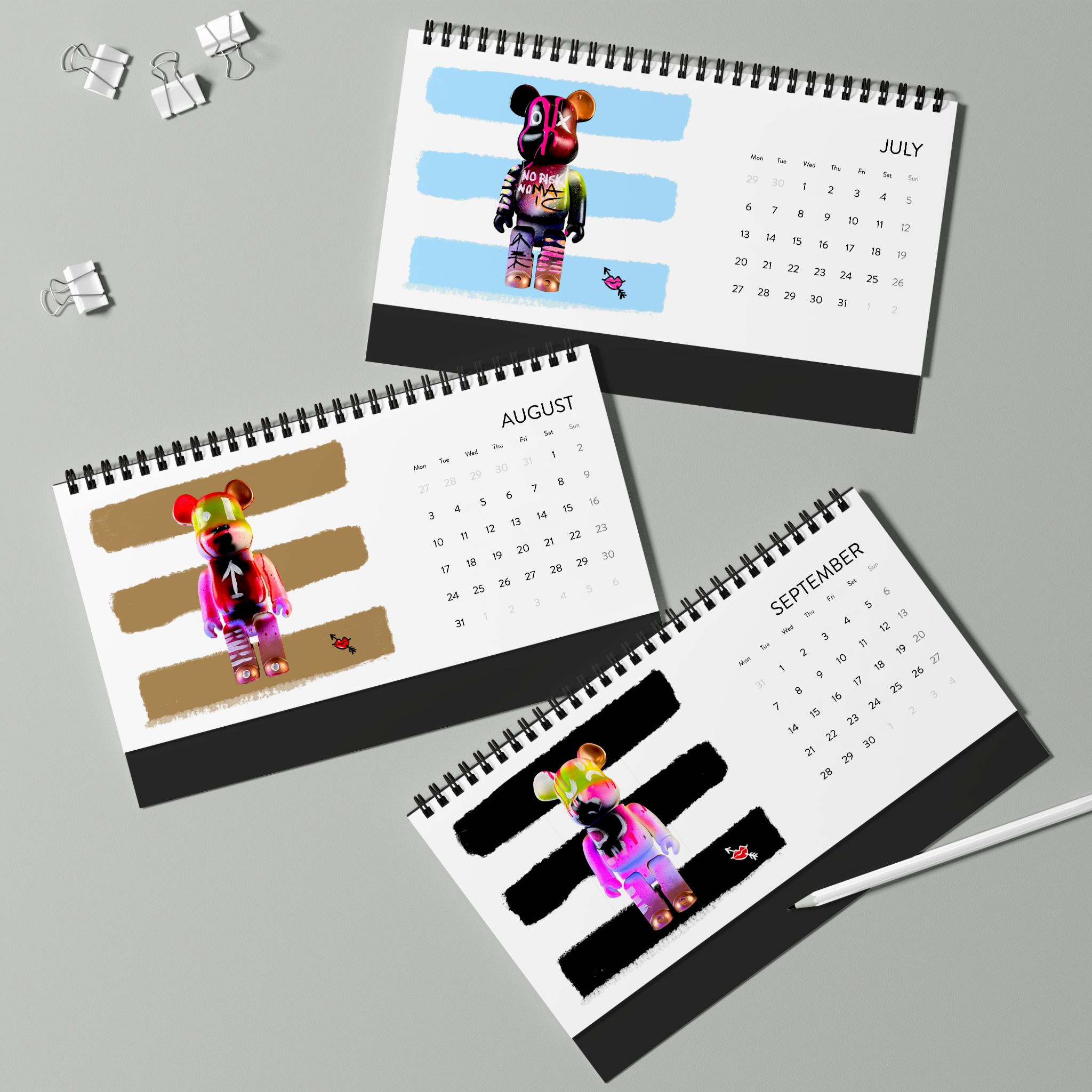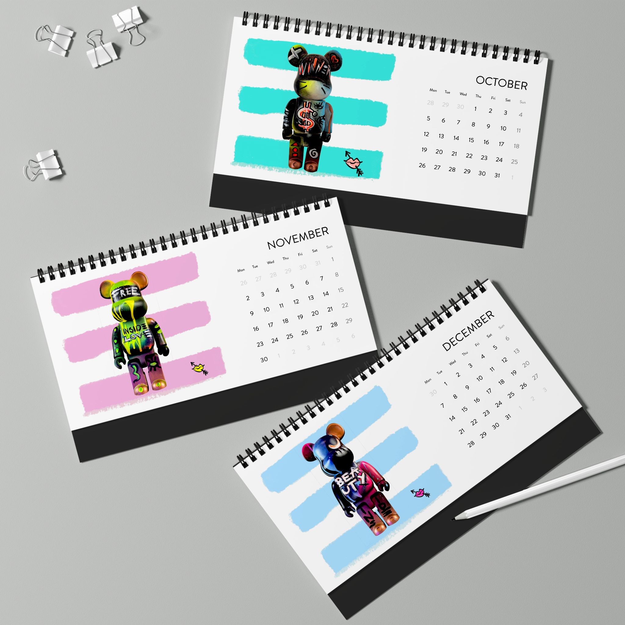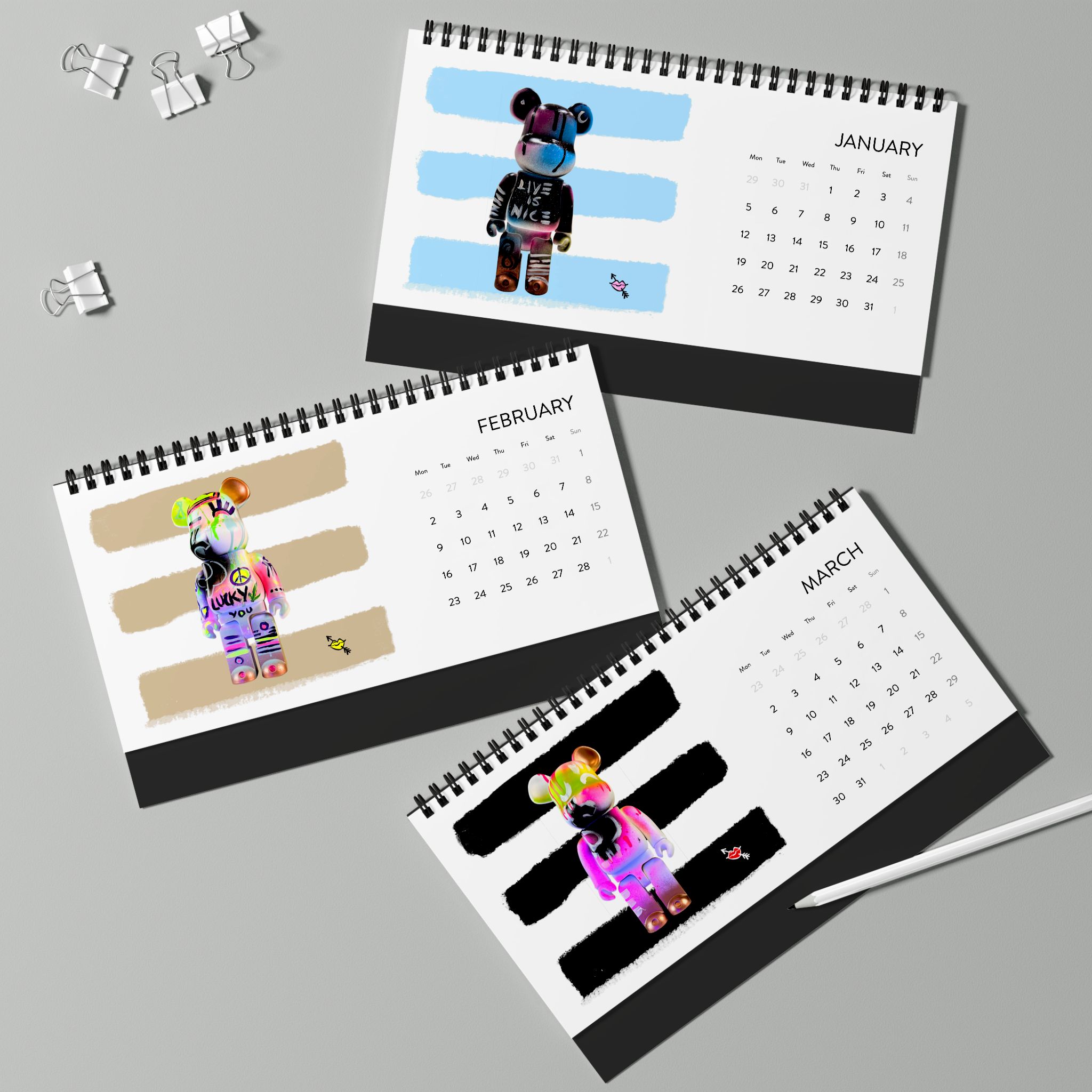 Dieser Tischkalender zeigt jeden Monat meine Bearbrick-Kunstwerke – fröhlich und mit verschiedenen Symbolen. Er bringt eine spielerische Note auf deinen Schreibtisch – perfekt für Kunstliebhaber und Bearbrick-Sammler. Ideal als Geschenk zu Geburtstagen, Feiertagen oder einfach für dich selbst.