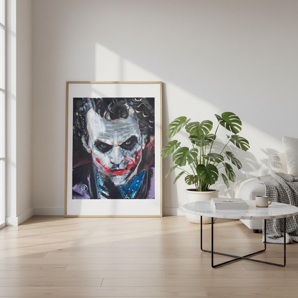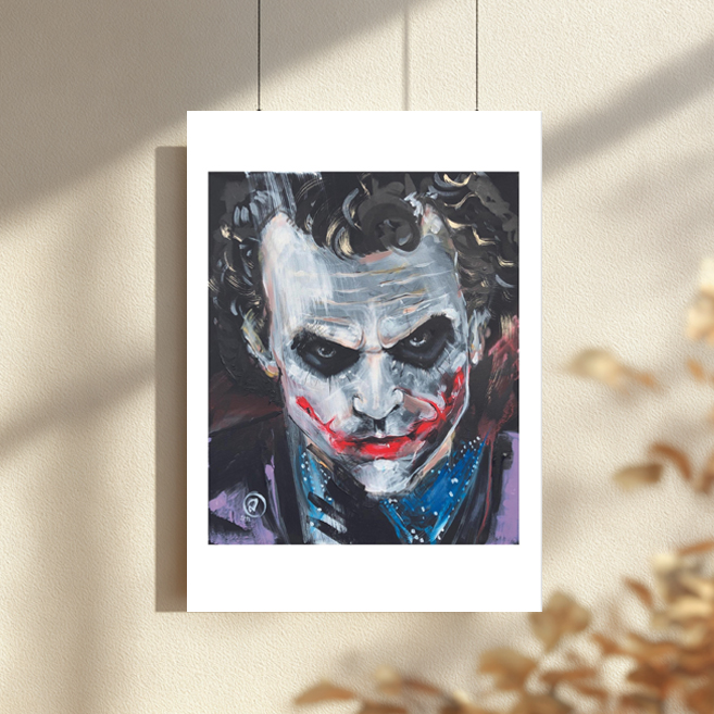 Dieser Fine Art Print zeigt meine Interpretation einer der faszinierendsten Filmfiguren unserer Zeit: Heath Ledgers ikonischer Joker.