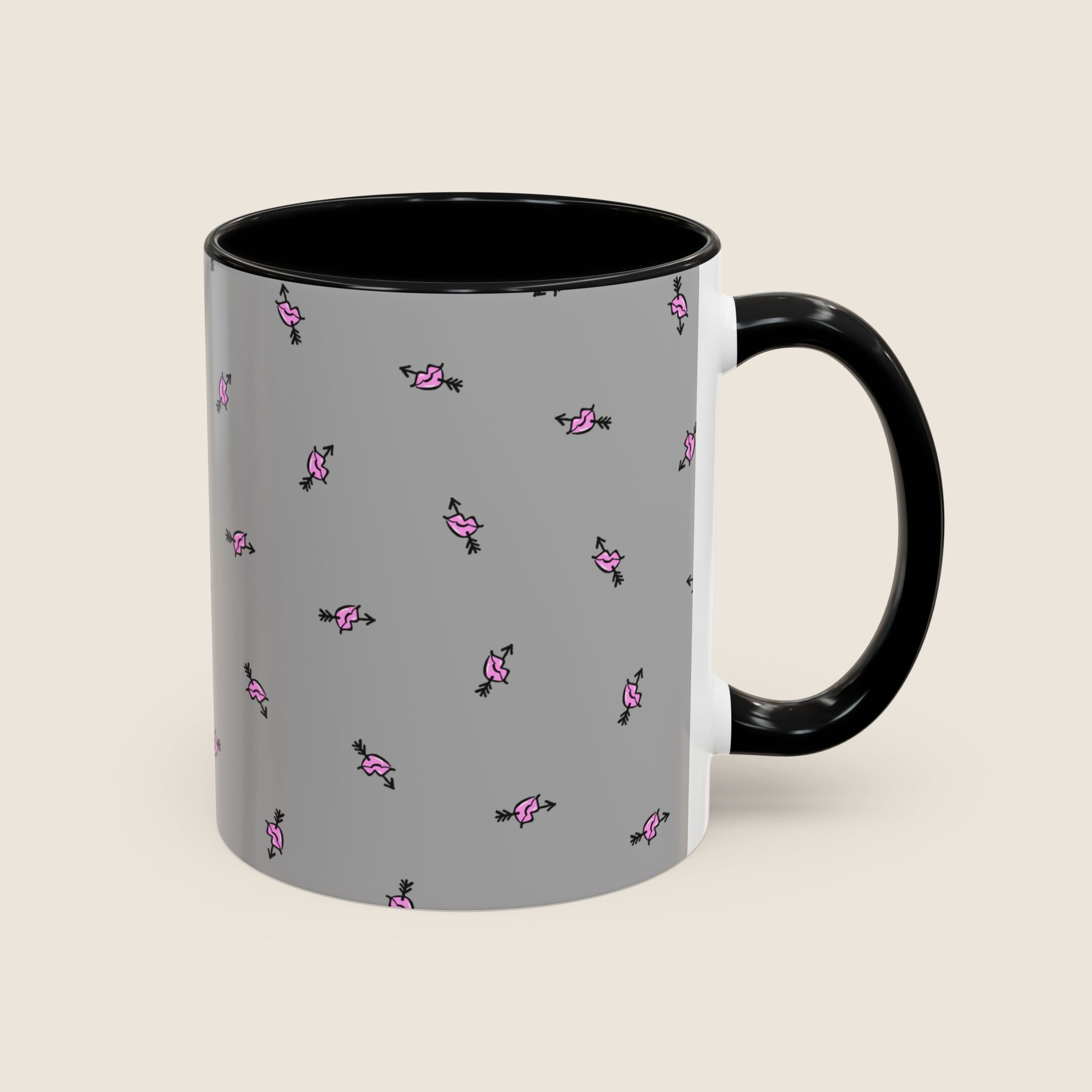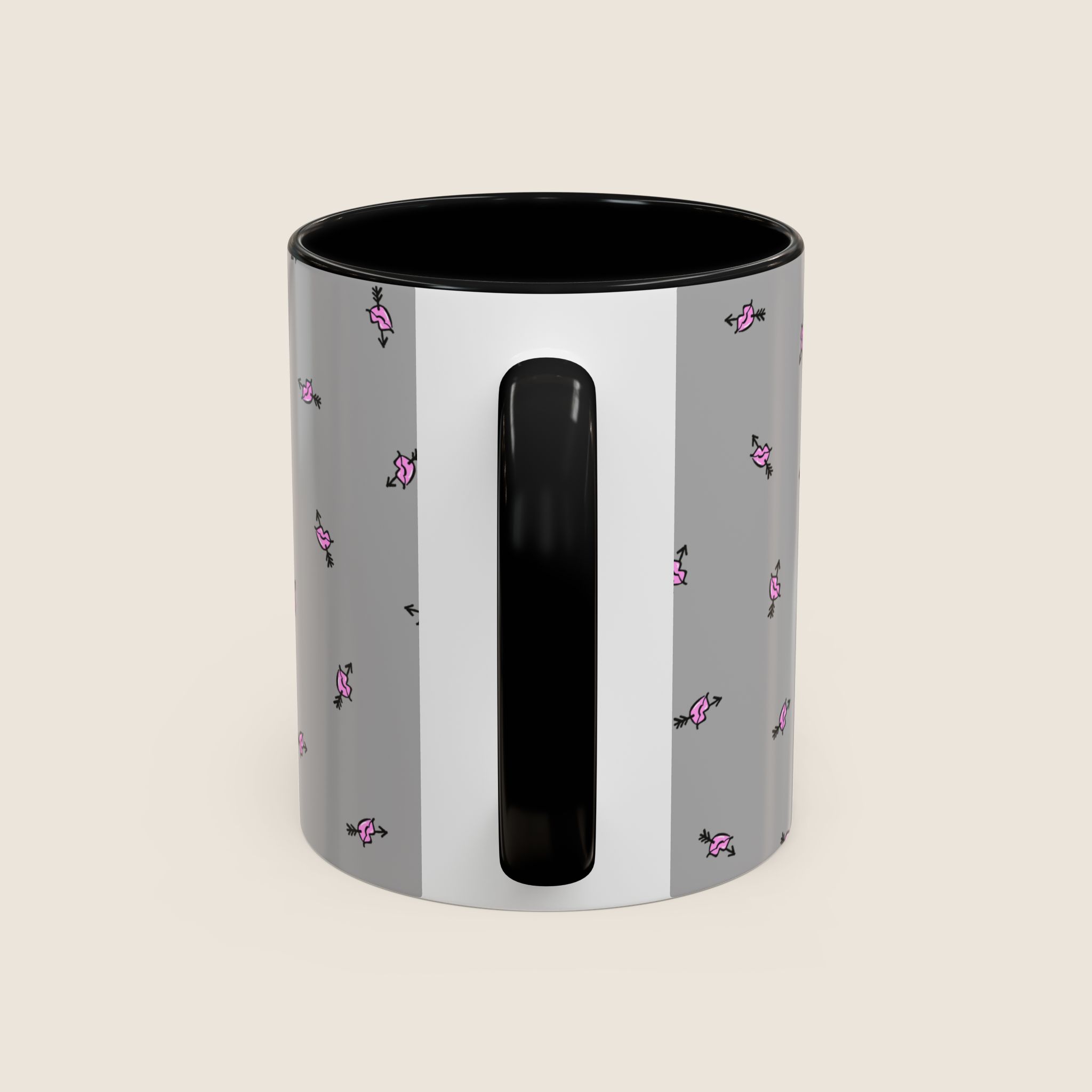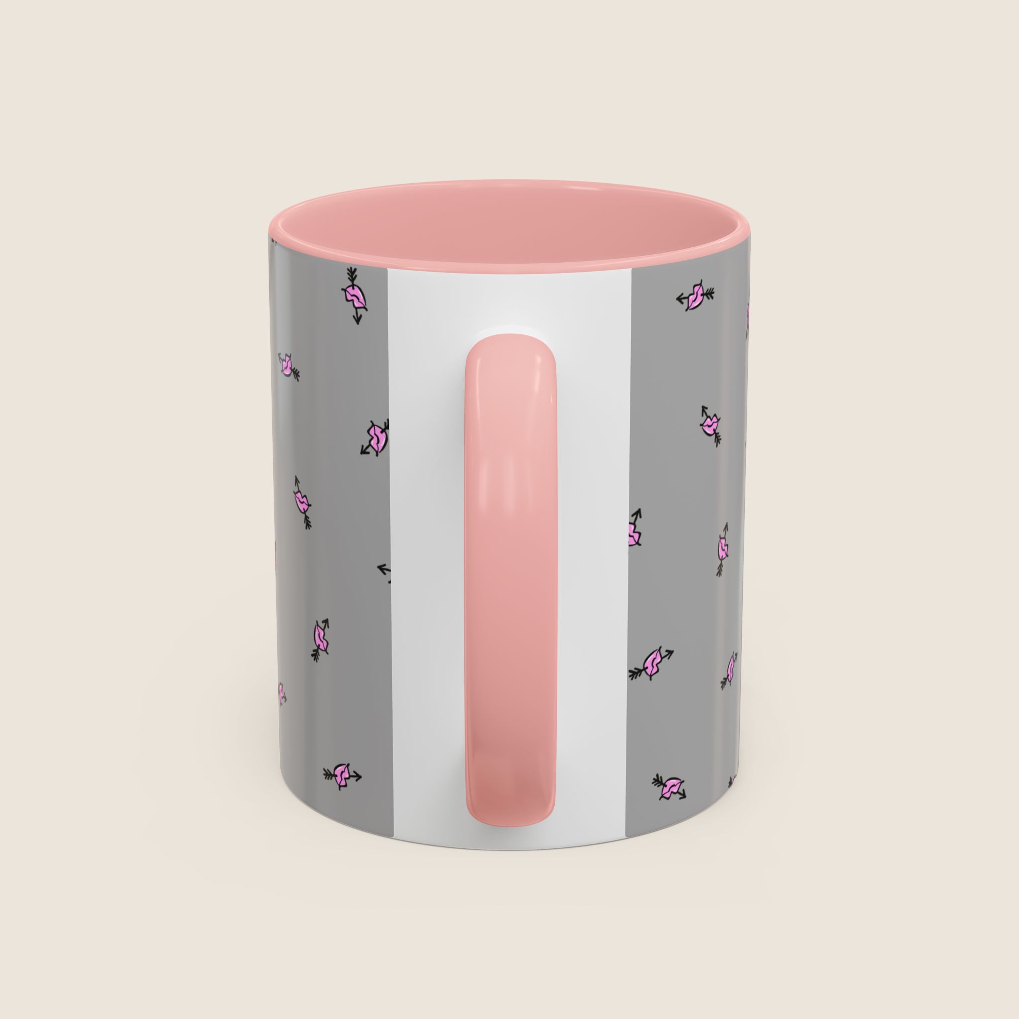 • Weisse Keramiktasse mit farbigem Innenleben und Henkel