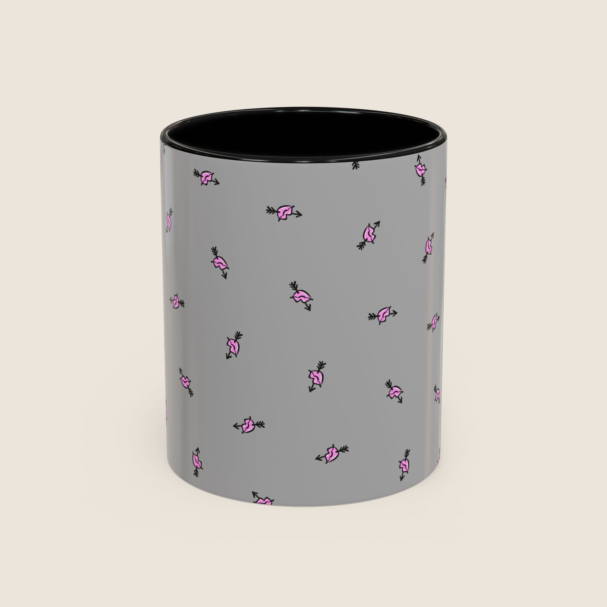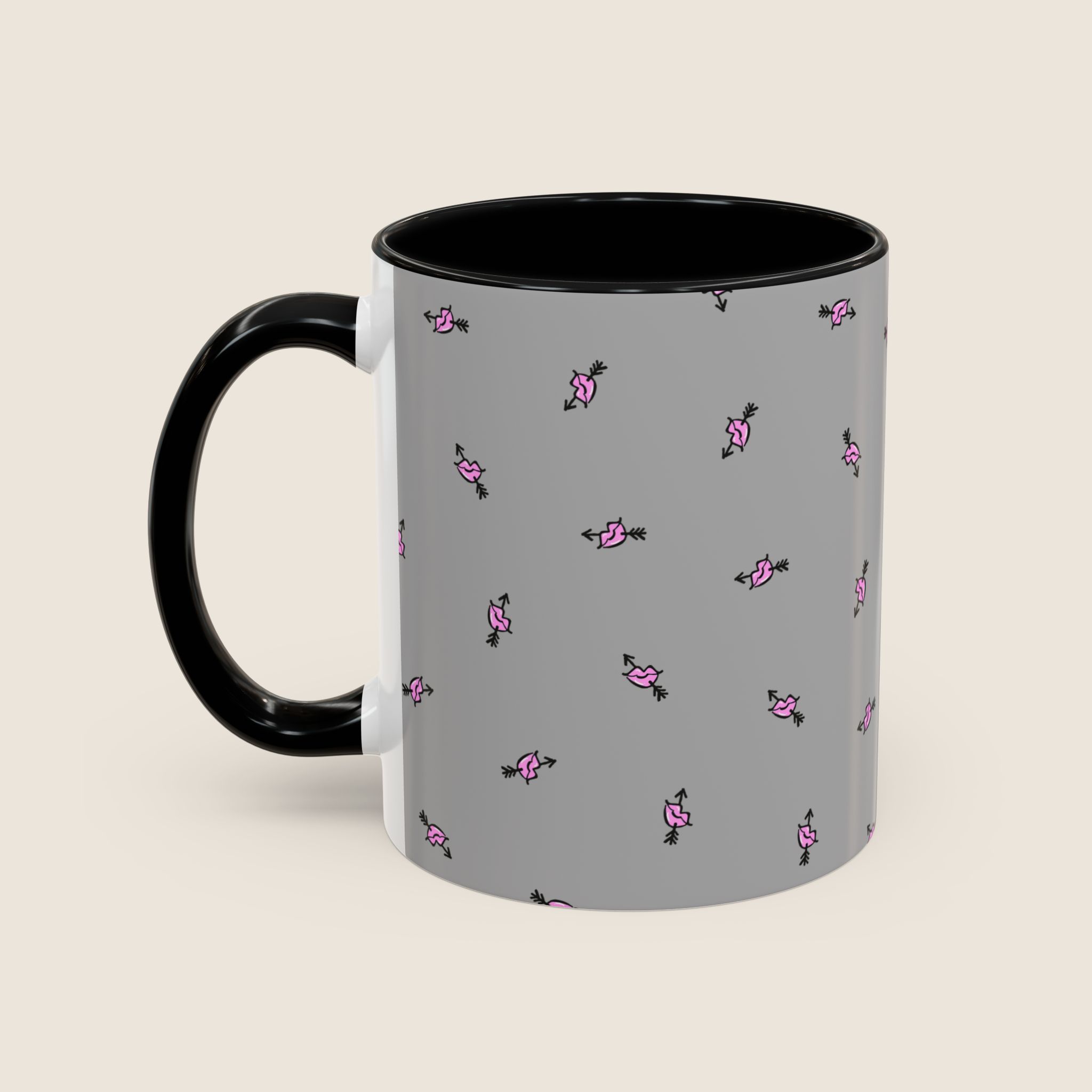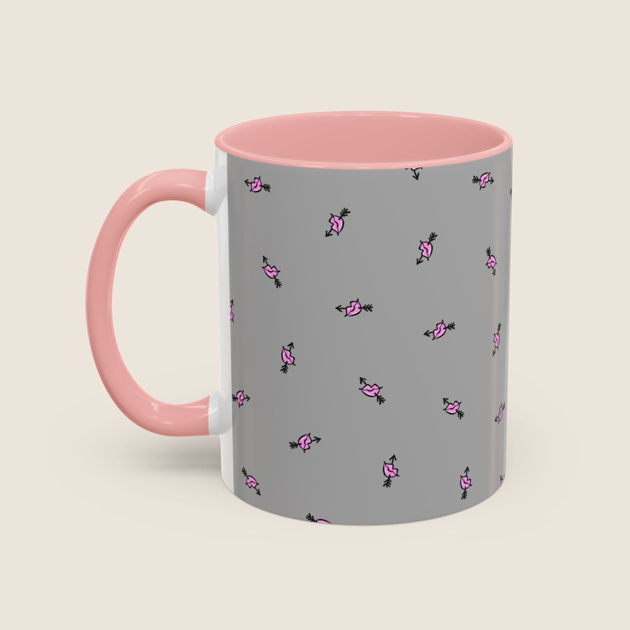 • Weisse Keramiktasse mit farbigem Innenleben und Henkel