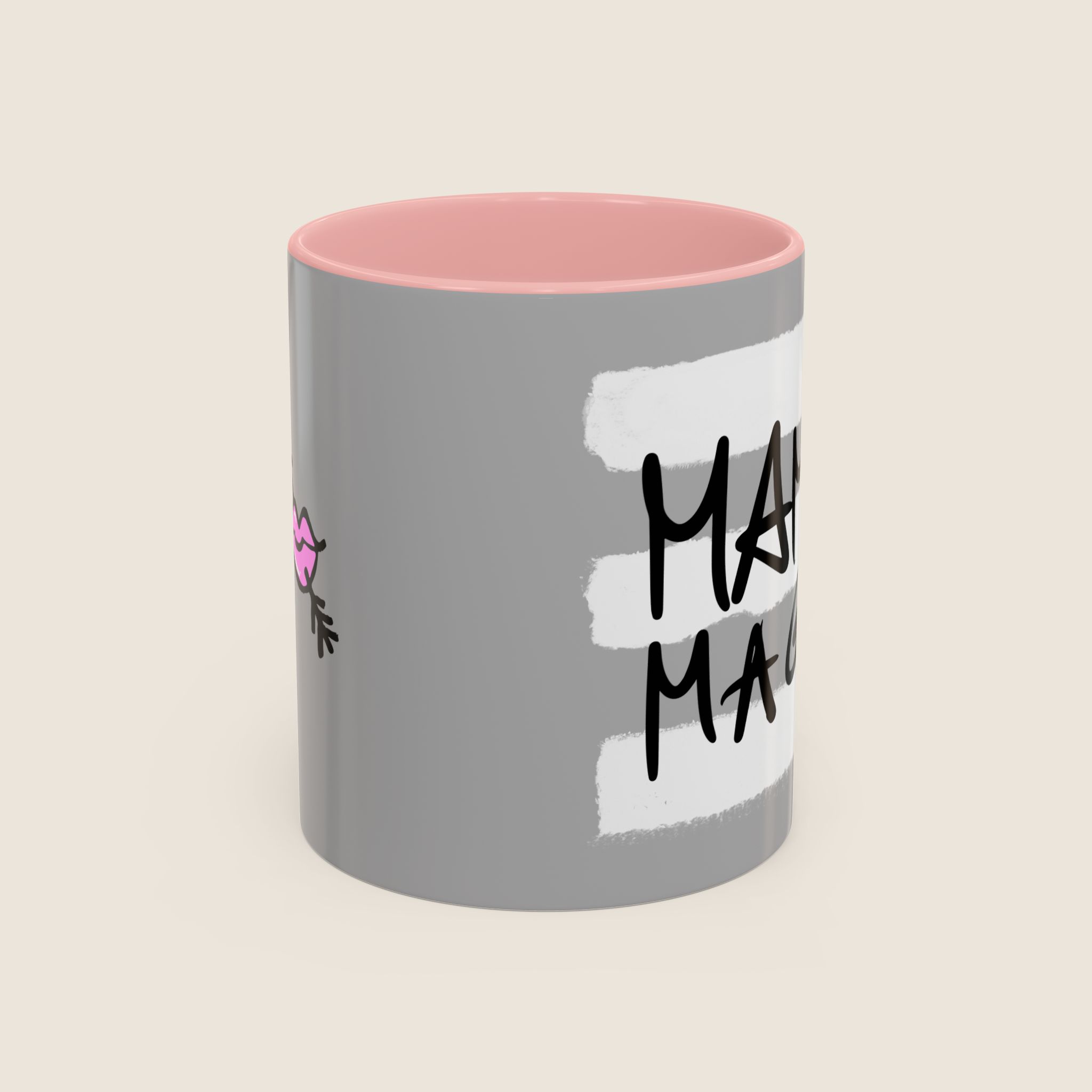 - Weisse Keramiktasse mit farbigem Innenleben und Henkel