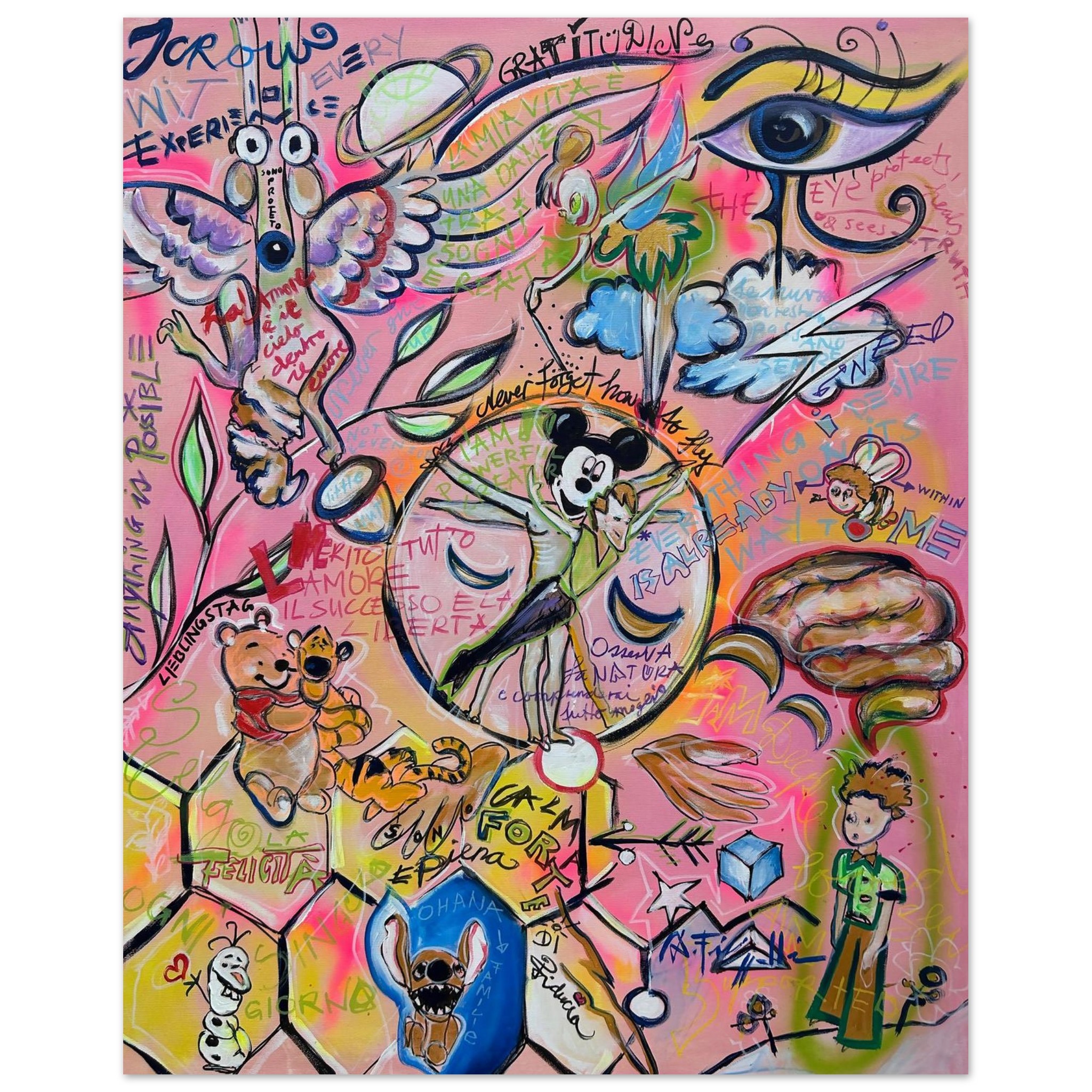 Ein Blick auf unser Manifestationsboard – mehr als nur ein Kunstwerk, es ist eine inspirierende Reise zu deinem inneren Kind. Dieses Fine Art Poster schafft eine positive Atmosphäre sowohl auf bewusster als auch unbewusster Ebene. Mit seinen emotionalen Themen wie Freundschaft, Liebe, Mut und Hoffnung, inspiriert von ikonischen Trickfilmfiguren aus Disney und Pixar, bringt es Freude und Bedeutung in jeden Raum.