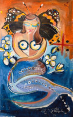 „Mermaid in Butterfly Flight“ entstand auf einer Kunstreise in Sardinien und enthält echten sardischen Sand. Das Werk verbindet mediterrane Natur, intuitive Farben und die Symbolik von Freiheit und Transformation – ein einzigartiges Original von Daniela Filippelli.