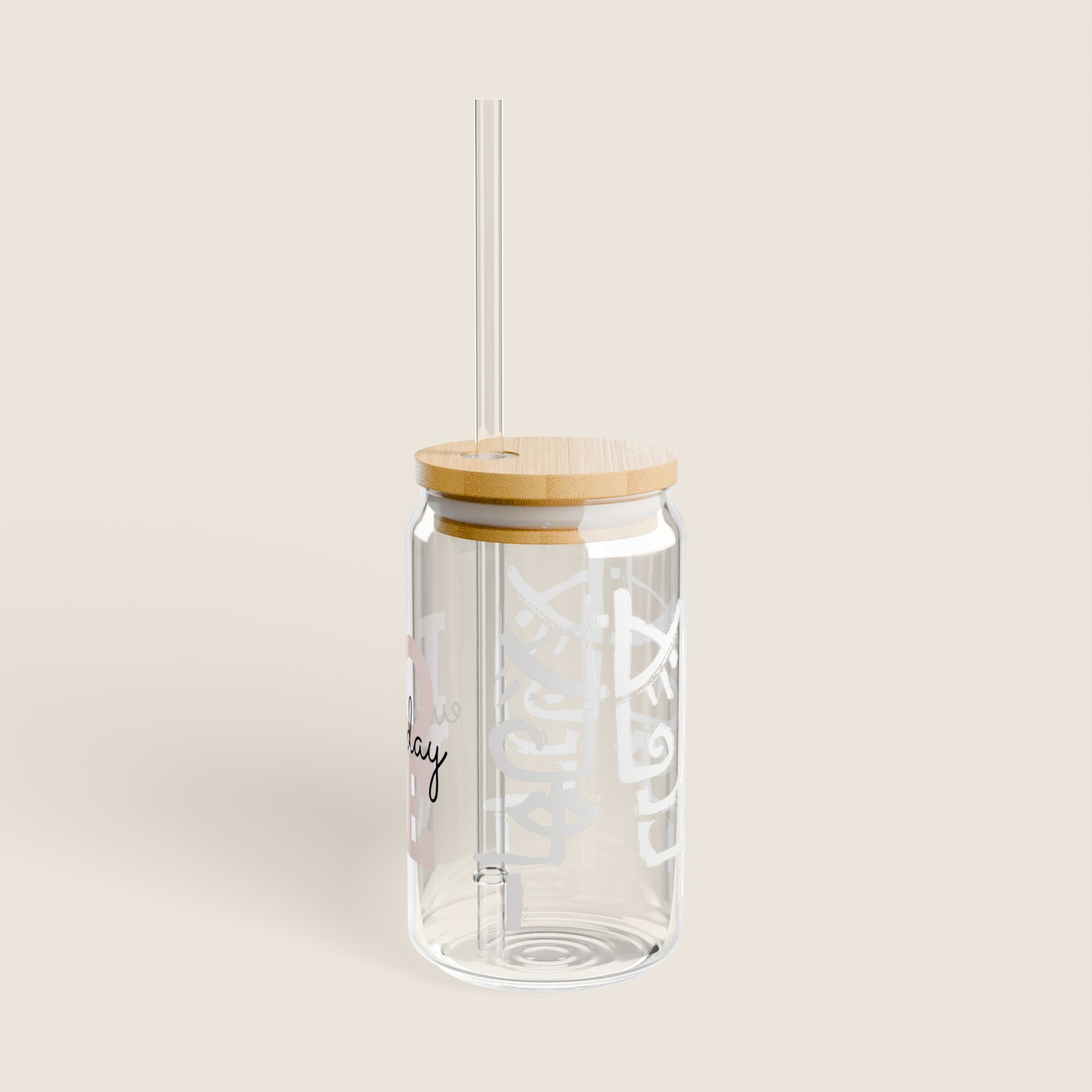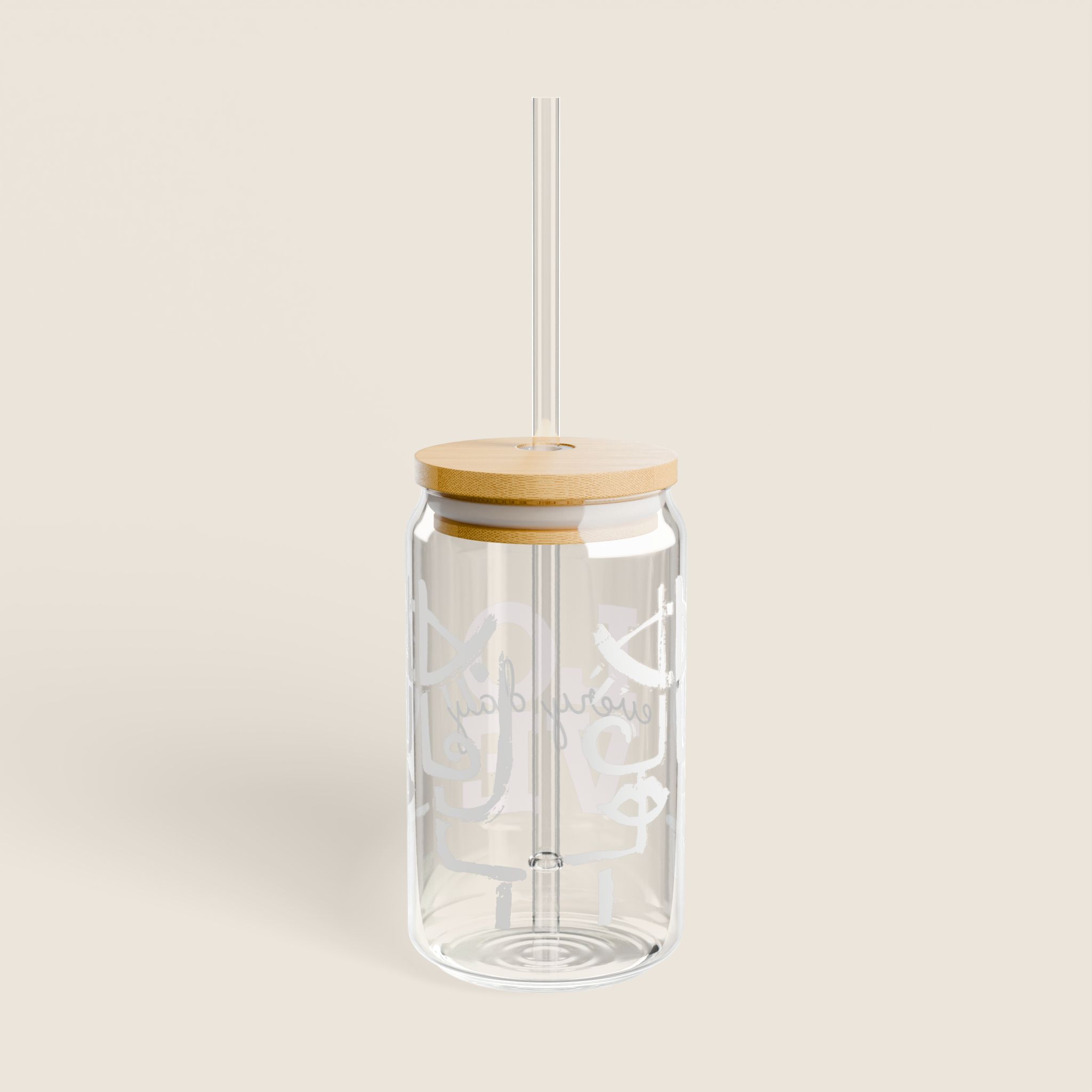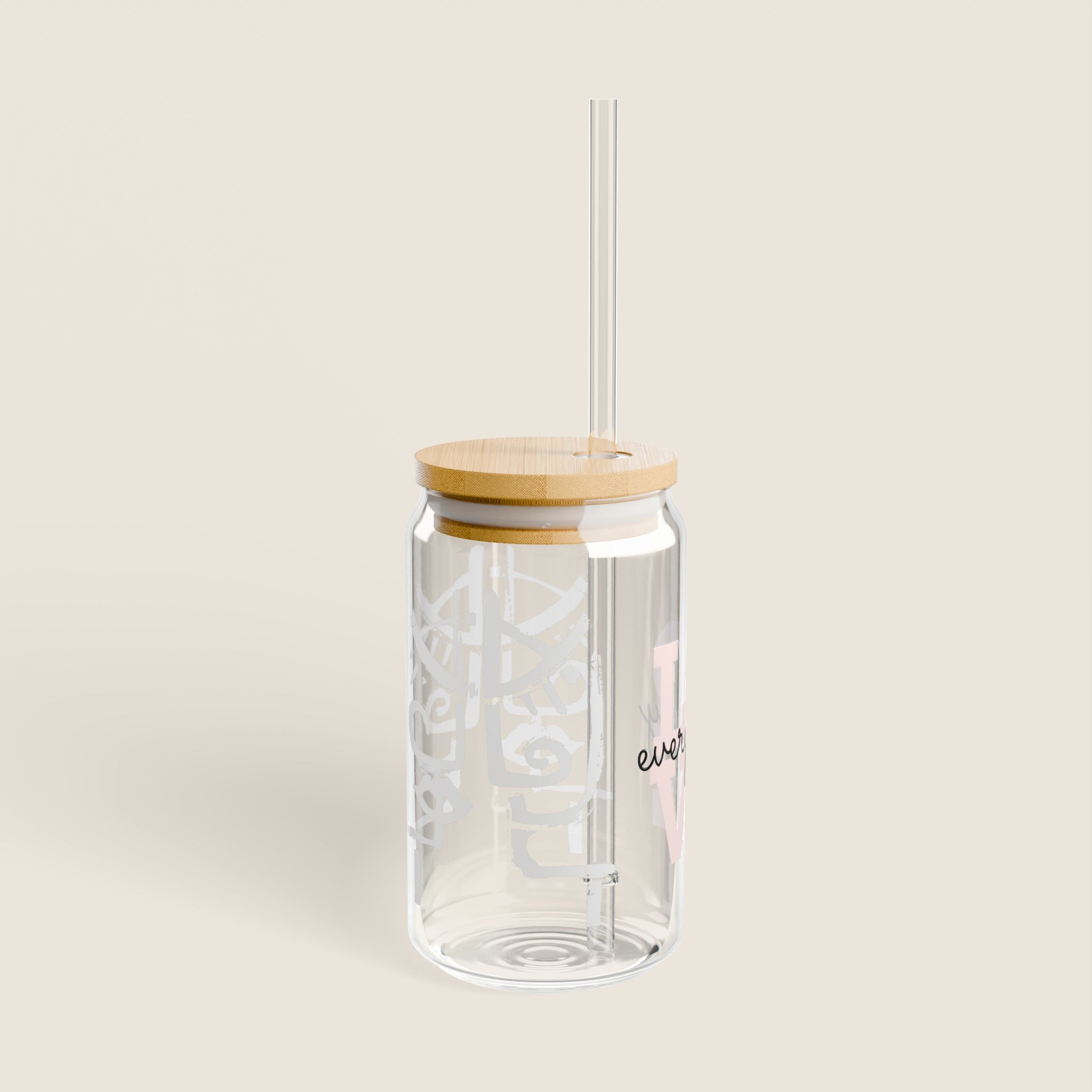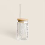 Trinkglas mit Bambusdeckel & Strohhalm